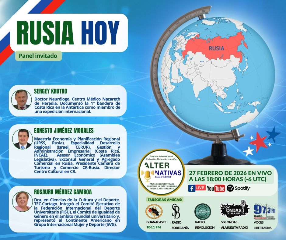 El programa Alternativas, impulsado por el Colectivo Reflexión – Acción, realizará el panel titulado “Rusia hoy”, un espacio de análisis que reunirá a personas especialistas en distintas áreas para reflexionar sobre la realidad contemporánea de ese país desde perspectivas económicas, culturales y científicas.
