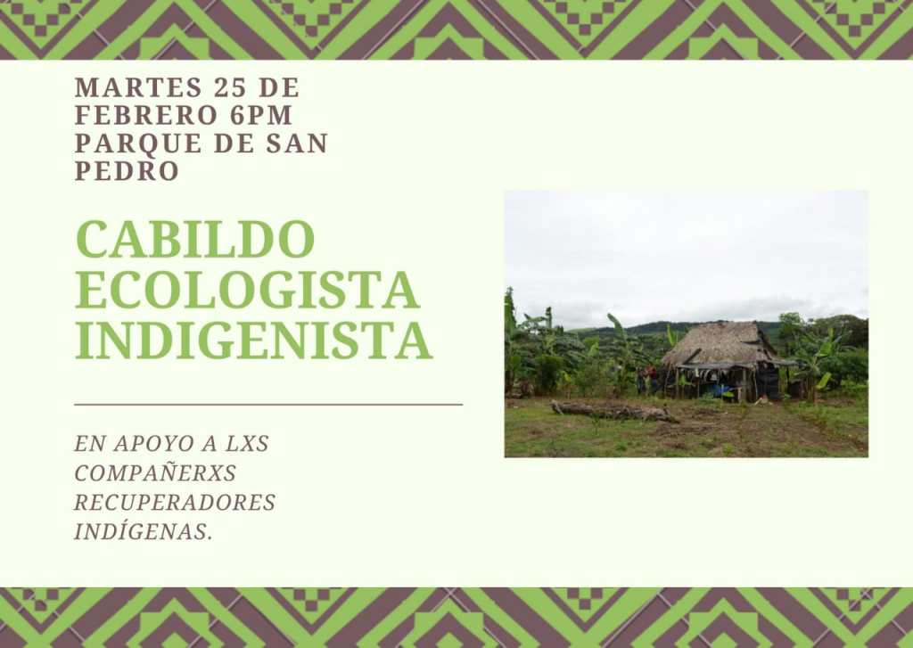 Cabildo Ecologista Indigenista en apoyo a los compañeros recuperadores indígenas, este próximo martes 25 de febrero en el Parque de San Pedro a las 6 p.m.