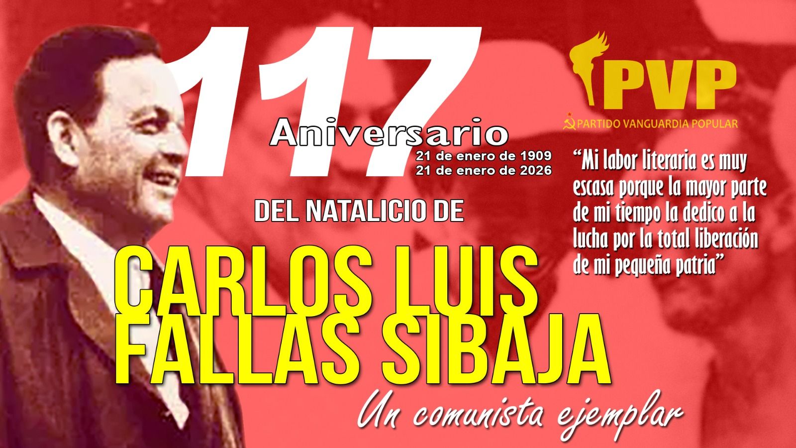 Al conmemorarse el 117 aniversario del natalicio de Carlos Luis Fallas (1909-2026), el Partido Vanguardia Popular – PVP y la Juventud Vanguardista Costarricense – JVC, reivindicamos con orgullo y convicción revolucionaria el ejemplo vivo de su militancia comunista, de su coherencia ética y política, y de su entrega total a la causa de la clase trabajadora y de los pueblos oprimidos. Calufa no es una figura del pasado ni una postal folclórica de la historia nacional; es una presencia activa en cada lucha contra la explotación, en cada acto de resistencia frente al imperialismo norteamericano, en cada esfuerzo por construir una Costa Rica verdaderamente libre, soberana y justa.