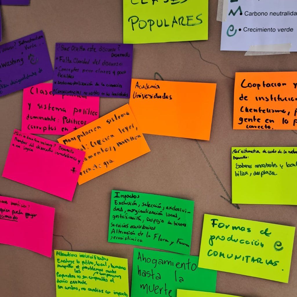 Se identificó cómo términos como sostenibilidad, carbono neutralidad o economía verde funcionan muchas veces como ropajes discursivos que legitiman megaproyectos turísticos, hidroeléctricos y monocultivos que generan despojo y desigualdad.