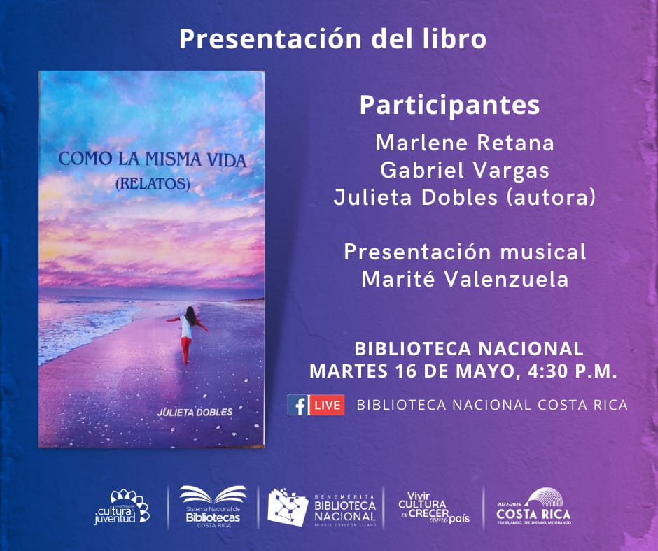 El martes 16 de mayo a las 4:30 p.m. la Biblioteca Nacional extiende una invitación a todos aquellos que deseen asistir a la presentación del libro “COMO LA MISMA VIDA (RELATOS)”.