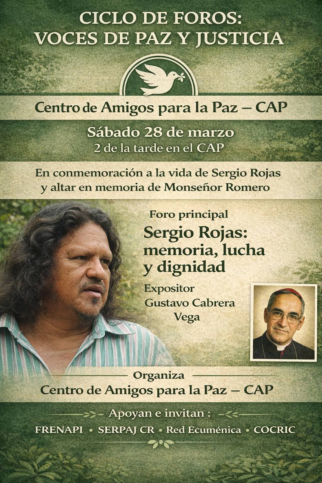 El foro contará con la participación de Gustavo Cabrera Vega, del Servicio de Paz y Justicia (SERPAJ Costa Rica), quien desarrollará el tema central del conversatorio, abordando la vida, el legado y las luchas de Sergio Rojas desde una perspectiva de derechos humanos y procesos comunitarios.