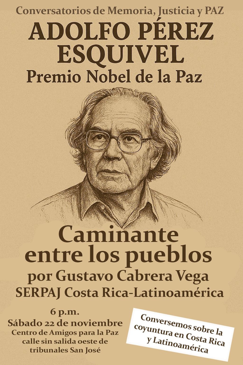 La actividad estará a cargo de Gustavo Cabrera Vega, de SERPAJ Costa Rica–Latinoamérica, quien guiará un diálogo centrado en la vida, la incidencia y el compromiso ético de Adolfo Pérez Esquivel, Premio Nobel de la Paz. Su trayectoria continúa siendo referente para los movimientos de defensa de los pueblos, las luchas por la justicia social y la resistencia pacífica frente a las violencias estructurales que persisten en América Latina.
