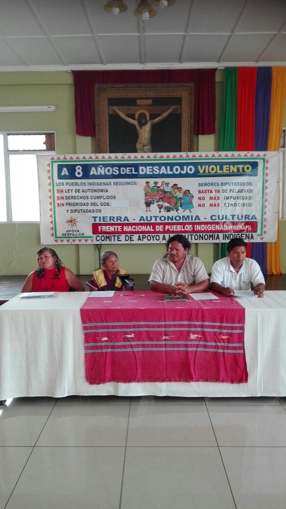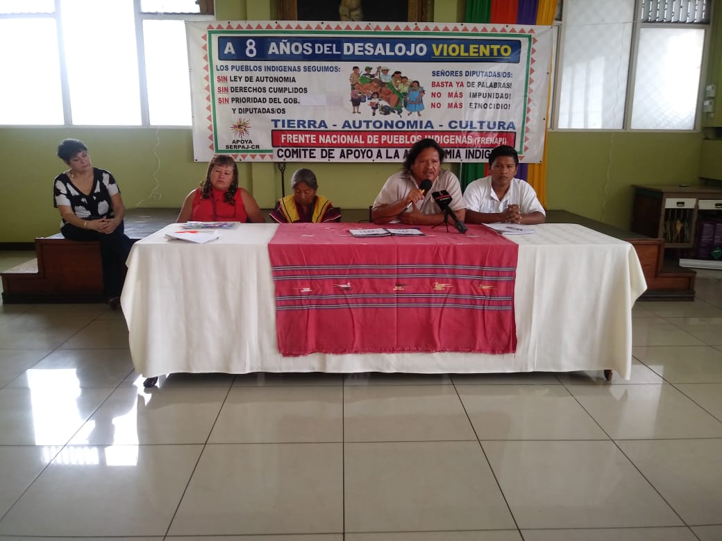 El pasado 09 de agosto se organizó una conferencia de prensa por parte del Frente Nacional de Pueblos Indígenas (FRENAPI), en el marco y en conmemoración del Día Internacional de los Pueblos Indígenas, donde se expuso la situación de los Pueblos Indígenas en Costa Rica, los procesos de recuperación Tierra/Territorio, que han provocado reacciones violentas de no indígenas usurpadores que viven dentro del Territorio, conflicto que ha tenido graves consecuencias para los indígenas; el estado de la consulta indígena que viene desarrollándose sin el concurso de nuestros Pueblos y las denuncias y las demandas ante las autoridades.