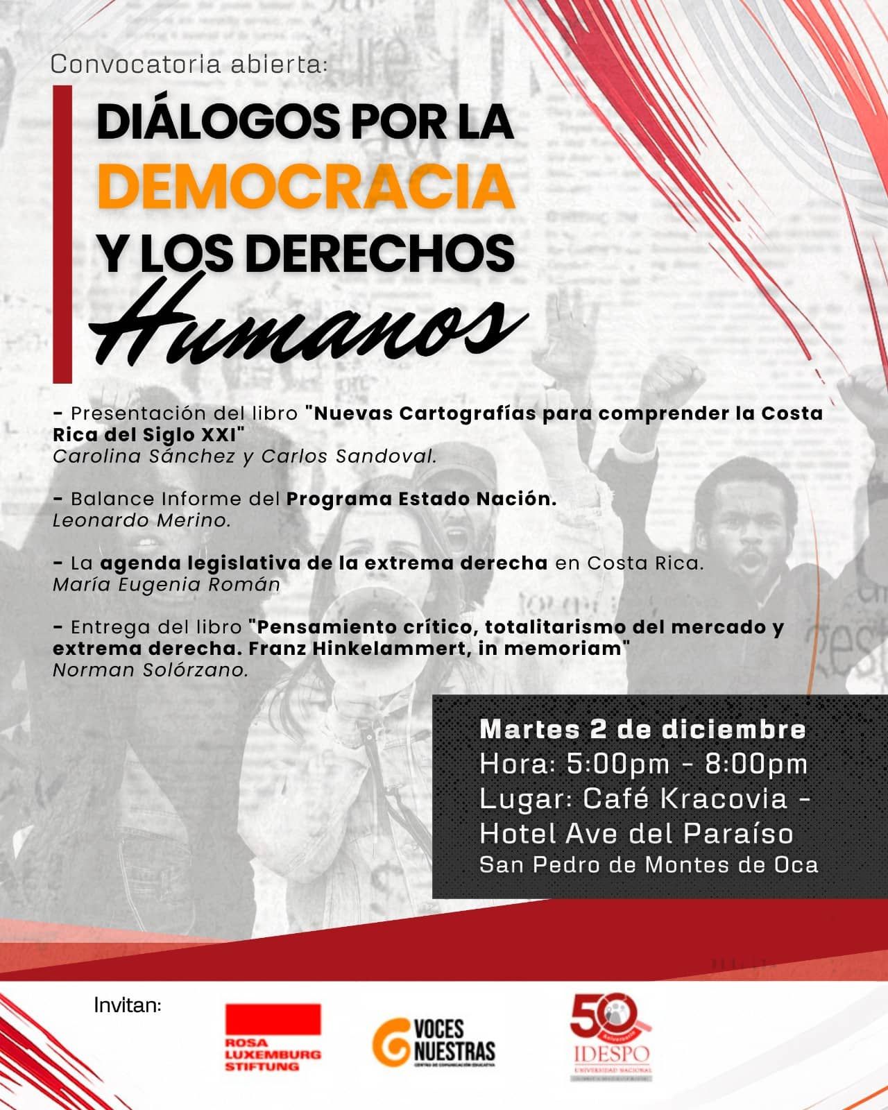 debate público, derechos humanos, diálogos por la democracia, Estado de la Nación, extrema derecha, Fundación Rosa Luxemburg, IDESPO UNA, participación ciudadana, pensamiento crítico, Voces Nuestras