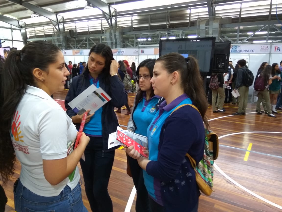 La actividad se llevó a cabo este lunes 27 y martes 28 de agosto del 2018 mediante la Feria: “Puertas Abiertas” organizada por la Vicerrectoría de Vida Estudiantil. En este espacio abierto se compartió información sobre las carreras disponibles en la UNA. La atención de los colegiales estuvo a cargo del personal de la UNA y estudiantes avanzados de las diversas Escuelas y Facultades de la Universidad Nacional.