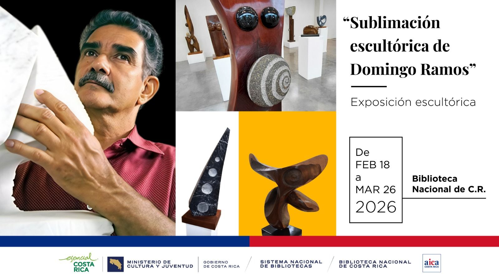 La Asociación Internacional de Críticos de Arte-Costa Rica y el Ministerio de Cultura y Juventud, por medio de la Benemérita Biblioteca Nacional, se complacen en invitarle a la exposición documental Sublimación escultórica de Domingo Ramos.