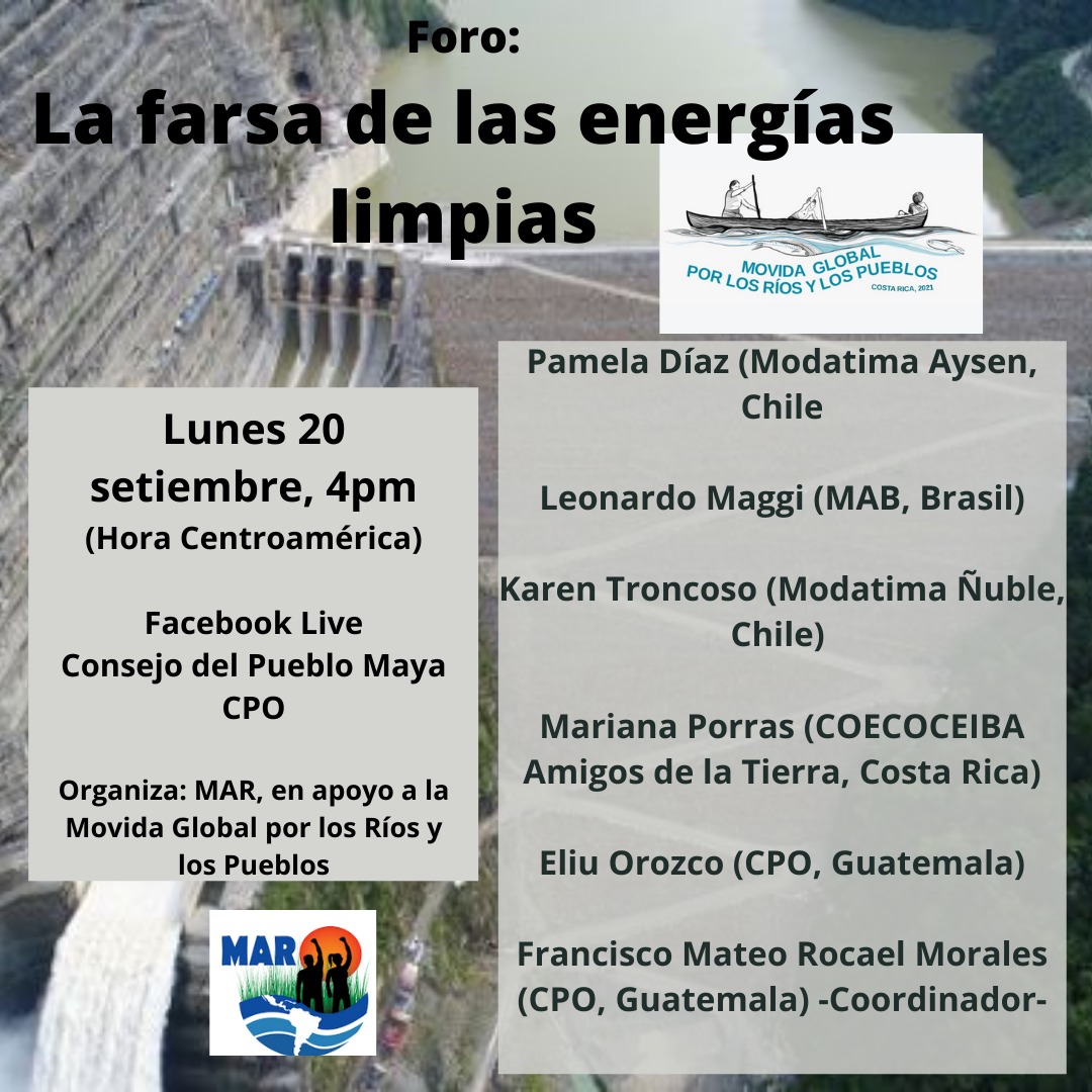 En apoyo a la Movida Global por los Ríos y los Pueblos se organizó el foro: “La farsa de las energías limpias”.