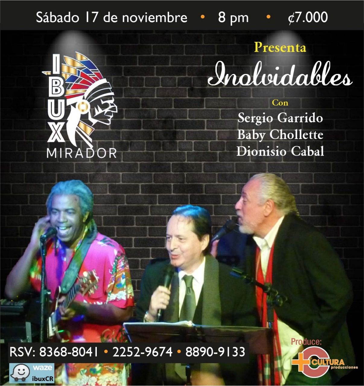 Este sábado 17 de noviembre a las 8 p.m. Ibux Mirador le invita a la presentación de los “Inolvidables” con Sergio Garrido, Baby Chollette y Dionisio Cabal.