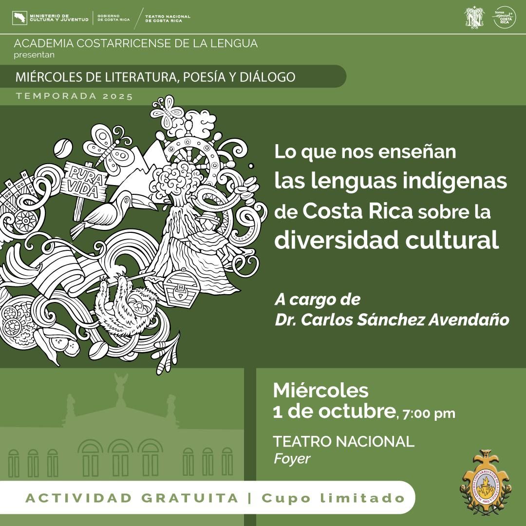 Lo que nos enseñan las lenguas indígenas sobre la diversidad cultural – hoy 1 octubre Escrito en 01/10/2025. Publicado en Cultura. Compartir: Haz clic para compartir en Facebook (Se abre en una ventana nueva) Facebook Haz clic para compartir en WhatsApp (Se abre en una ventana nueva) WhatsApp Haz clic para compartir en X (Se abre en una ventana nueva) X Haz clic para compartir en Telegram (Se abre en una ventana nueva) Telegram Haz clic para enviar un enlace por correo electrónico a un amigo (Se abre en una ventana nueva) Correo electrónico Haz clic para compartir en Threads (Se abre en una ventana nueva) Threads Haz clic para compartir en LinkedIn (Se abre en una ventana nueva) LinkedIn Carlos Sánchez Avendaño, charla, Costa Rica, diversidad cultural, lenguas indígenas Anterior Siguiente