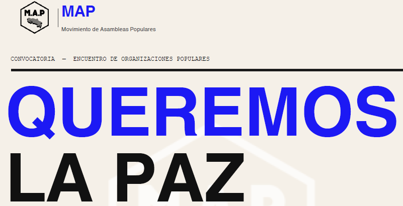 El Movimiento de Asambleas Populares (MAP) convoca a un encuentro de organizaciones de la sociedad civil y del movimiento popular costarricense, ante lo que considera una situación urgente derivada de recientes hechos de carácter político-diplomático.