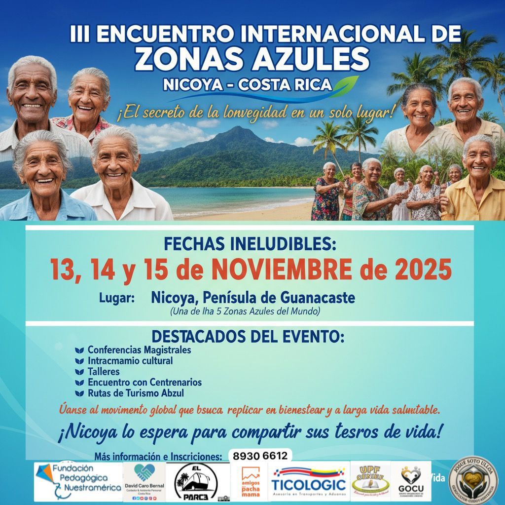 La Península de Nicoya, reconocida mundialmente como una de las cinco zonas azules del planeta, se prepara para recibir el III Encuentro Internacional de zonas azules, que se llevará a cabo los días 13, 14 y 15 de noviembre de 2025, organizado con el apoyo de la Fundación Pedagógica Nuestramérica.