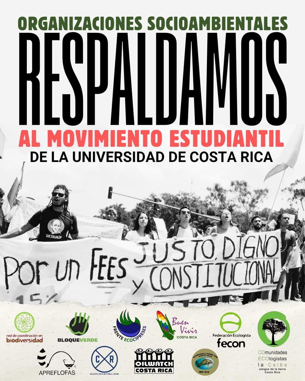 Las organizaciones socioambientales firmantes manifestamos nuestro respaldo firme a las y los estudiantes de la Universidad de Costa Rica (UCR), quienes hoy se encuentran en primera línea en la defensa de la educación pública, la autonomía universitaria y los principios democráticos que sostienen nuestro Estado Social de Derecho.