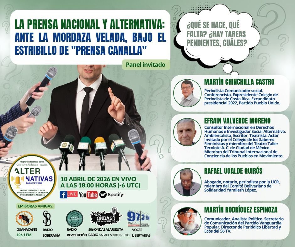 El programa radial Alternativas organiza un panel de análisis titulado “La prensa nacional y alternativa: ante la mordaza velada, bajo el estribillo de ‘prensa canalla’”, con el objetivo de reflexionar sobre el papel de los medios de comunicación en el contexto actual y los desafíos que enfrentan frente a discursos que buscan desacreditarlos.