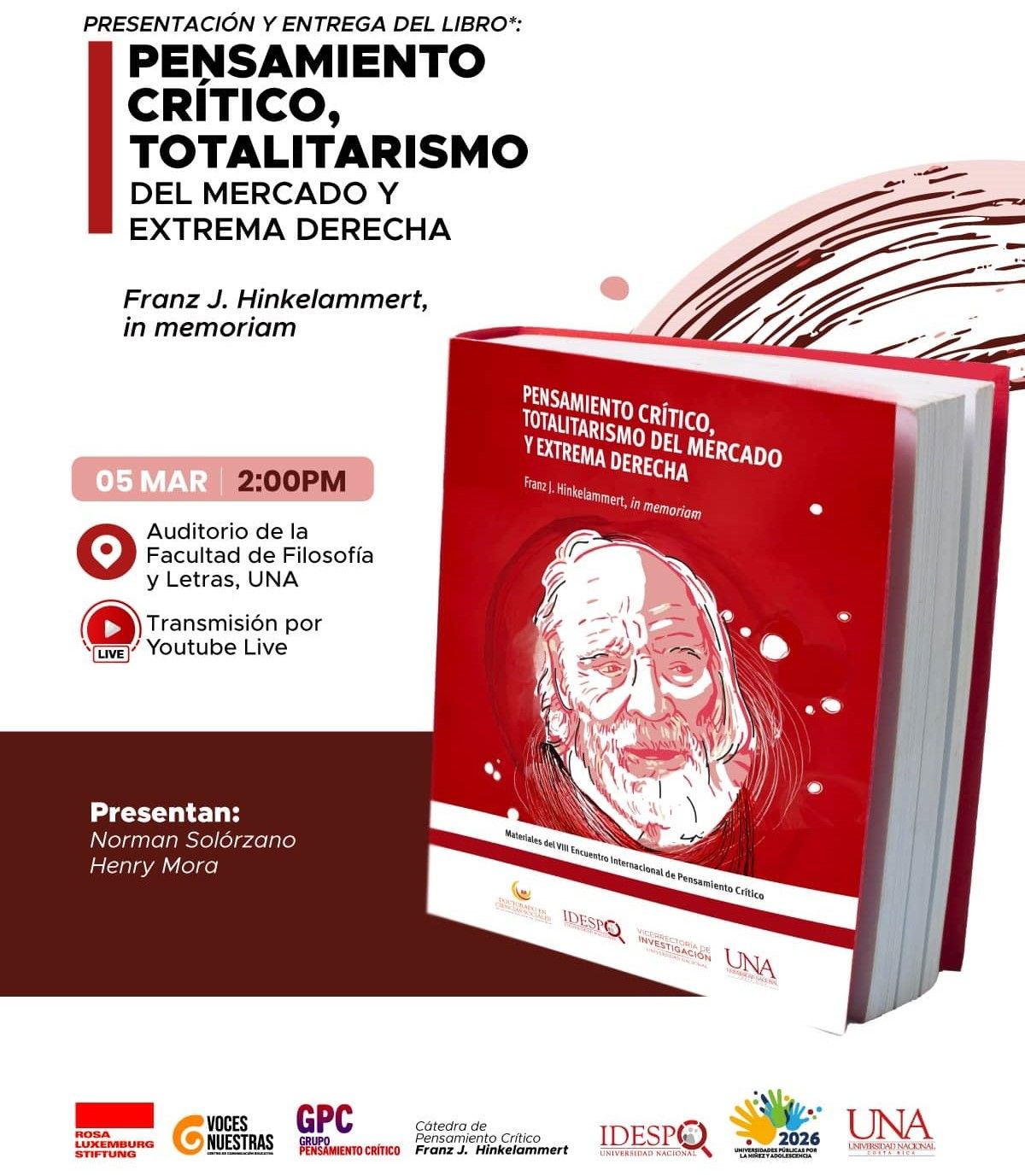 La Universidad Nacional (UNA) será sede de la presentación y entrega del libro Pensamiento crítico, totalitarismo del mercado y extrema derecha, obra dedicada in memoriam al filósofo y economista Franz J. Hinkelammert, una de las figuras más influyentes del pensamiento crítico en América Latina.