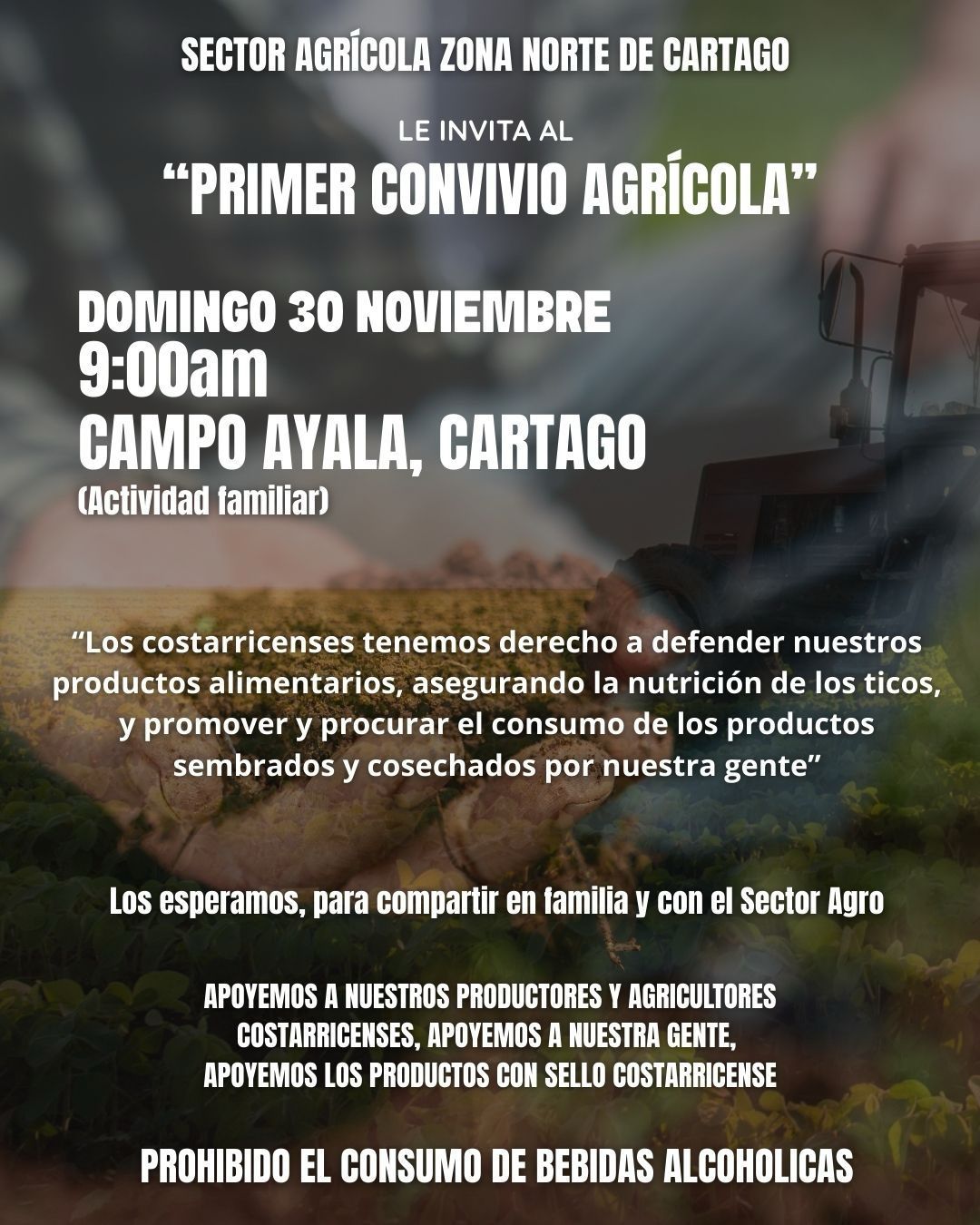 El convivio de este domingo se enmarca en este contexto de organización social y defensa del agro costarricense, e invita a la población a valorar, de forma cercana y comunitaria, el aporte de quienes cultivan y cosechan los alimentos en el país.