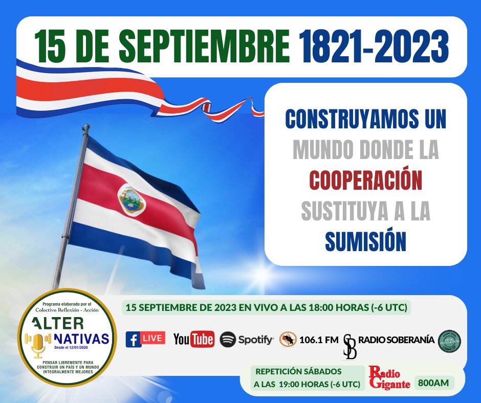 El programa elaborado por Colectivo Reflexión-Acción: Alternativas le invita a sintonizar: 15 de septiembre 1821:2023. Construyamos un mundo donde la cooperación sustituya la sumisión.