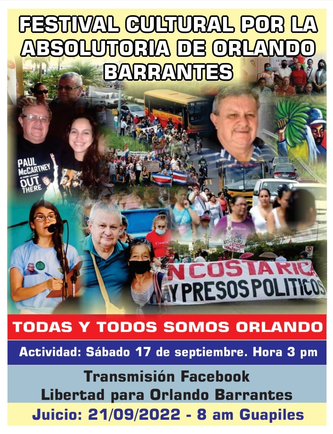 Este próximo sábado 17 de setiembre a las 3pm, estaremos realizando el Festival por la Absolutoria de Orlando Barrantes de forma virtual y transmitido por el Facebook «Libertad para Orlando Barrantes».