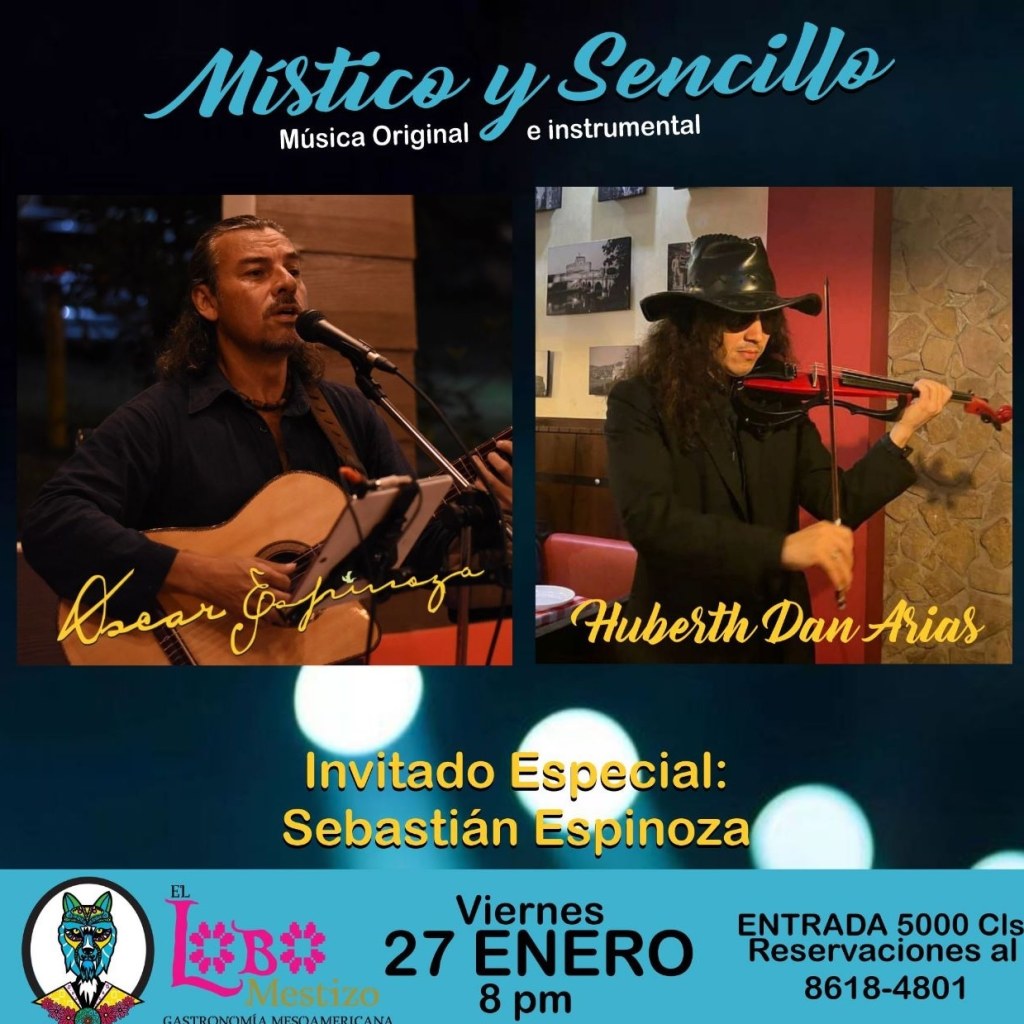 Sé parte de la presentación de grandes artistas, en una noche de buena música por parte del violinista y cantautor Huberth Dan Arias, acompañado de Sebastián Espinoza.
