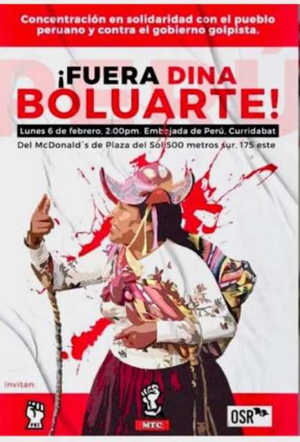 Diversas organizaciones sociales costarricenses, ante la masacre que sufre el pueblo de Perú, hacen un llamado a manifestarse frente a la Embajada de Perú en Costa Rica, para que se detenga el asesinato de ciudadanos que protestan en legítima defensa de la institucionalidad y el retorno del presidente Pedro Castillo que sufrió un golpe de Estado.