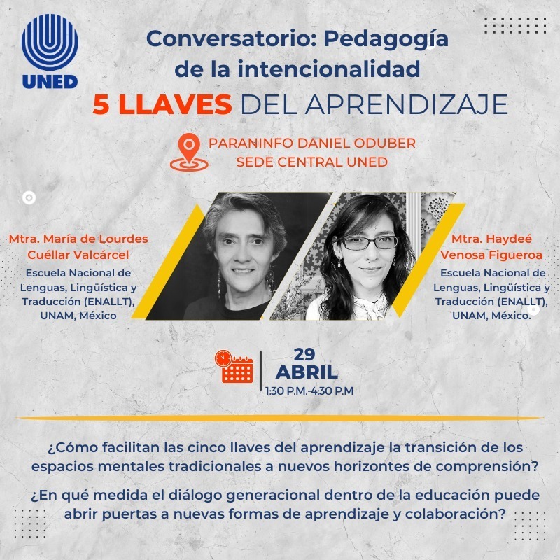 El lunes 29 de abril, a la 1:30 p.m. se va a realizar el conversatorio: Pedagogías de la intencionalidad.