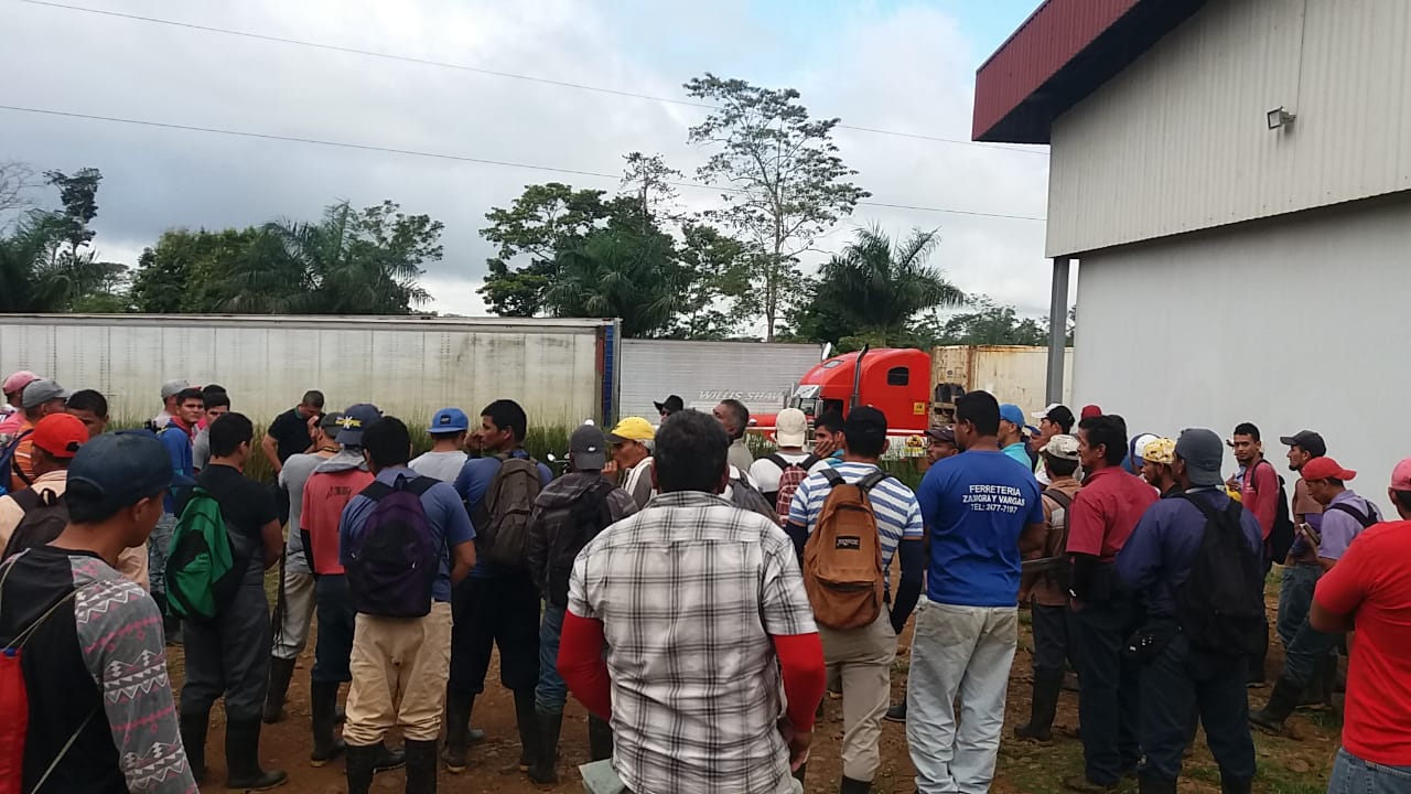 Todos los trabajadores de la finca piñera B y Jiménez, ubicada a 5 km de Pavón de Los Chiles, amanecieron hoy en huelga, debido a que su patrono les adeuda 3 semanas de salario y la mitad del aguinaldo.