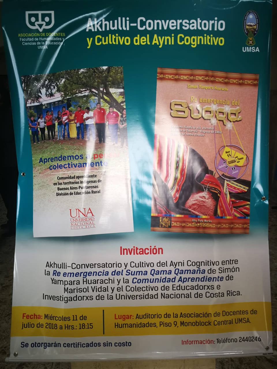 Para la UNA es motivo de satisfacción saber que se compartieron 4 encuentros en sedes universitarias, 3 conversatorios en espacios de vida comunitarios, 1 jornada en el Instituto de Investigación Interdisciplinaria en Cochabamba. 1 jornada con el Vice-Ministro de Educación y su equipo y 3 programas de televisión con Cobertura Nacional en Bolivia, que mostraron el valor que tiene el conocimiento universitario cuando emerge del diálogo de saberes y del caminar con las comunidades rurales e indígenas de la Abya Yala.